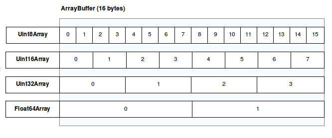 Uint8Array - интерпретирует каждые 2 байта как неотрицательное целое число от 0 до 65535. Соответствует типу uint16_t в C.