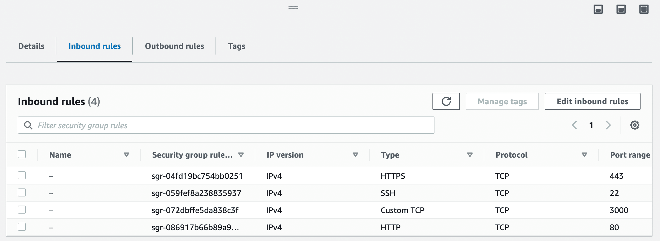Для развертки подойдет любой нестыдный облачный VPS на рынке, но в моем случае это именно Amazon EC2. Перед тем как смотреть дальше у вас уже должен быть создан инстанс(так называются виртуальные сервера EC2), с настроенным Elastic IP и доступными способами подключения (по SSH, HTTP, HTTPS). Удостоверьтесь, что у вас совпадает с тем, что на скриншоте.